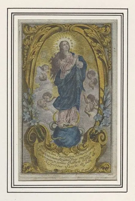 Bemerkungen: Zu sehen ist die betende Maria auf einer Mondsichel bzw. Schlange stehend. .