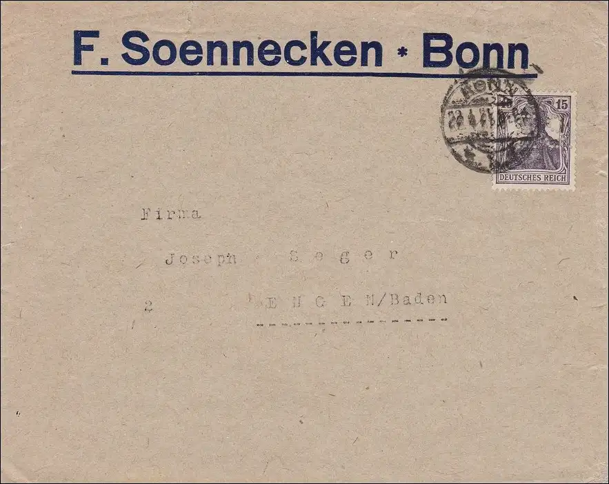 Perfin: Brief aus Bonn, F. Soennecken, 1921, FS
