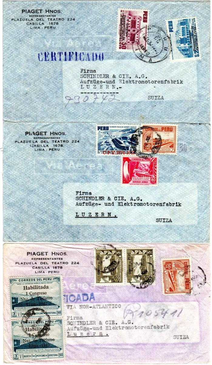 Peru, 3 Luftpost Brief i.d. Schweiz, 2 davon per Einschreiben