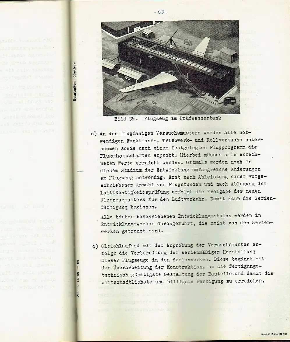 sehr guter Zustand, geringe Gebrauchs- und Alterungsspuren: beide Titel oben mit Namenszug - Papier teils etwas vergilbt, aber Seiten sauber und ordentlich - wenige Ränder mit kleinen Blessuren - alle Hefte befinden sich gemeinsam in einer Klemmmappe, da wo diese entlang des Rückens die Hefte etwas zusammen drückt, werden die Seiten eine schwache Druckspur besitzen, Druckschriften ZLL D 16.00-7 und ZLL D 14.00-59 als Manuskript gedruckt Luftschraubentriebwerke - Strahltriebwerke - Entwicklung des Flugzeugs - Technische und ökonomische Grundlagen für den heutigen Flugzeugbau - Betriebskosten - Sicherheitsanforderungen, Halbleinen-Klemmmappe, ca. 21,5 x 30,5, 104 (30 + 74) Seiten mit 60 Bildern