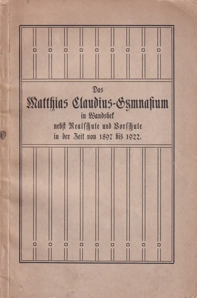 (Petersen, Emil): Das Matthias Claudius-Gymnasium in Wandsbek nebst Realschule und Vorschule in der Zeit von 1897 bis 1922.