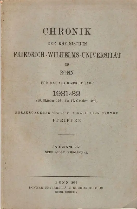Pfeiffer, Paul (Rektor der Universität) (Hrsg.): Chronik der Rheinischen Friedrich-Wilhelms-Universität zu Bonn für das Akademische Jahr 1931 / 32. Jahrgang 57. Neue Folge Jahrgang 46.