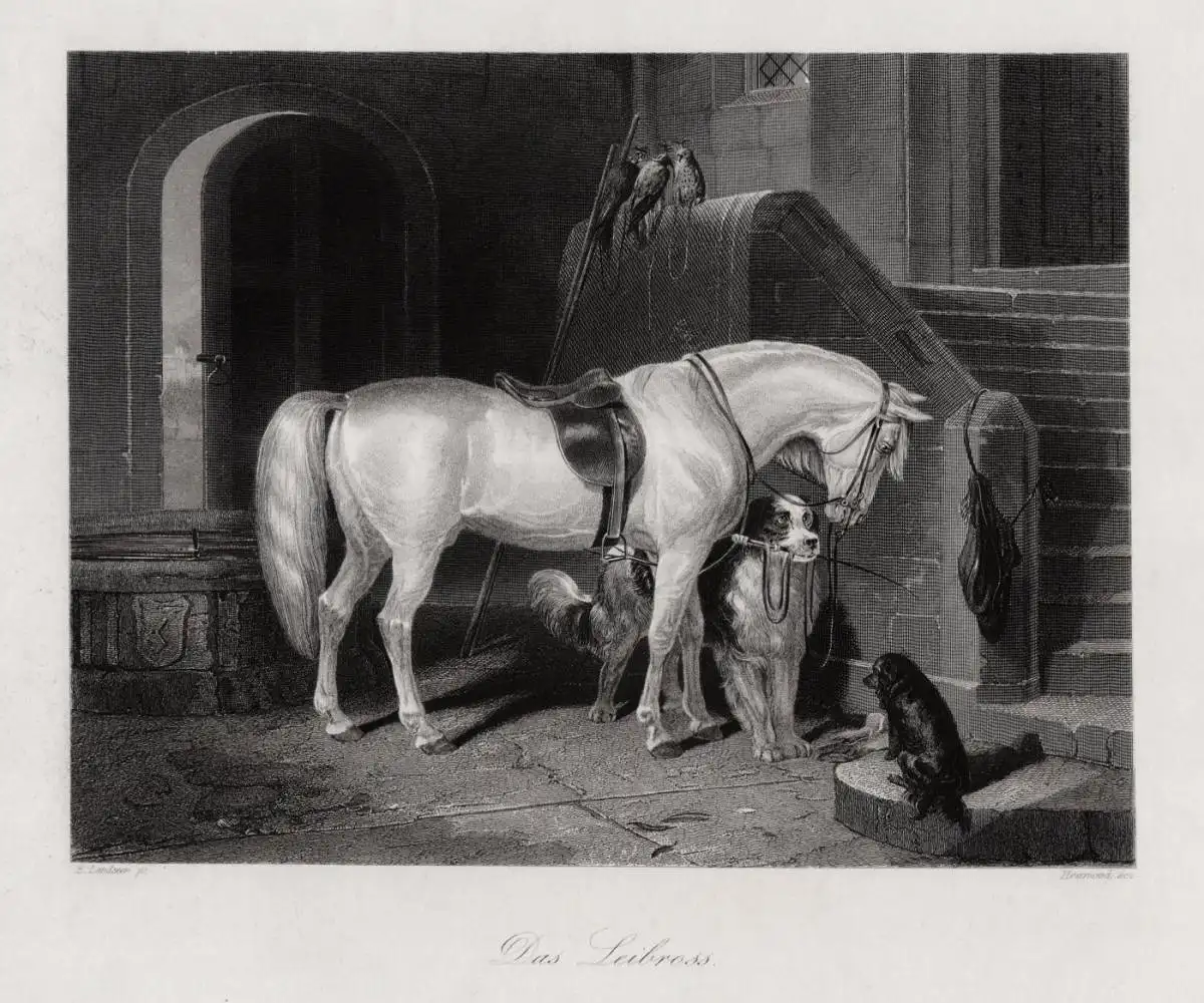 Pferd. Das Leibross. Originaler Stahlstich, n. Landseer um 1850