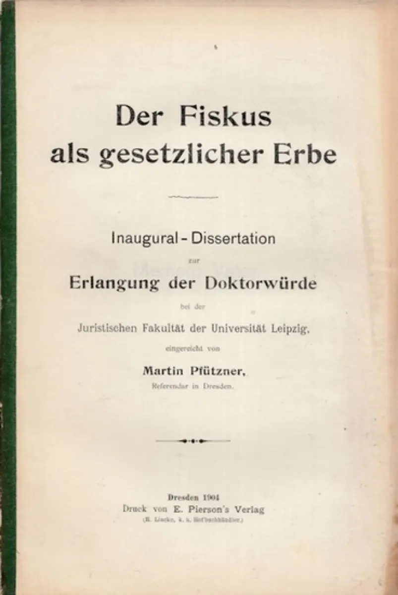 Pfützner, Martin: Der Fiskus als gesetzlicher Erbe. Inaugural-Dissertation ... bei der Universität Leipzig.