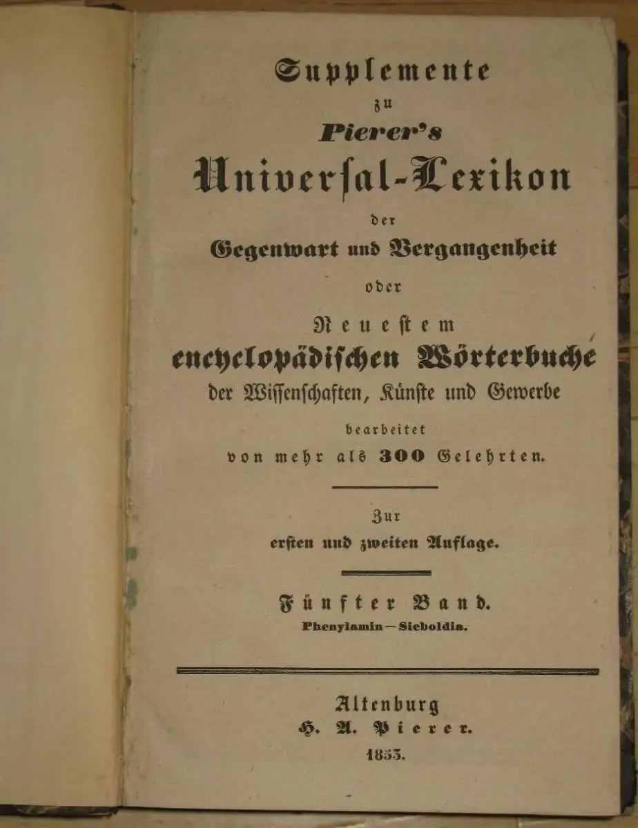 Pierer's Universal-Lexikon der Gegenwart und Vergangenheit oder Neuestem encyclopädischen Wörterbuche der Wissenschaften, Künste und Gewerbe.