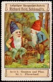 Gnomen und Pilze, Zwerge, Serie 5, Nr. 1, Größe/Zustand: 7x5 , guter Zustand, Original alte Reklamemarke die seinerzeit für die Werbung benutzt wurde
