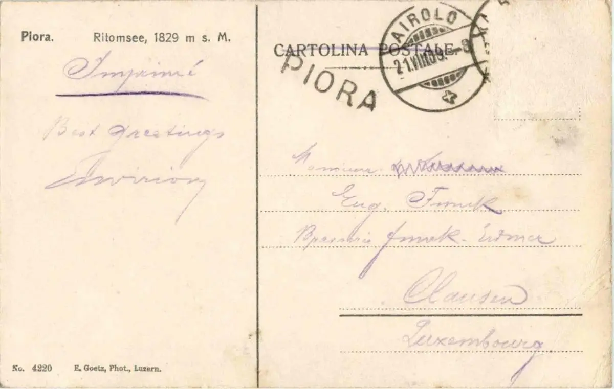 Danke. Alles Bestens. Können Sie mir allenfalls mitteilen, aus welchem Jahr die Postkarte stammt? Besten Dank.
