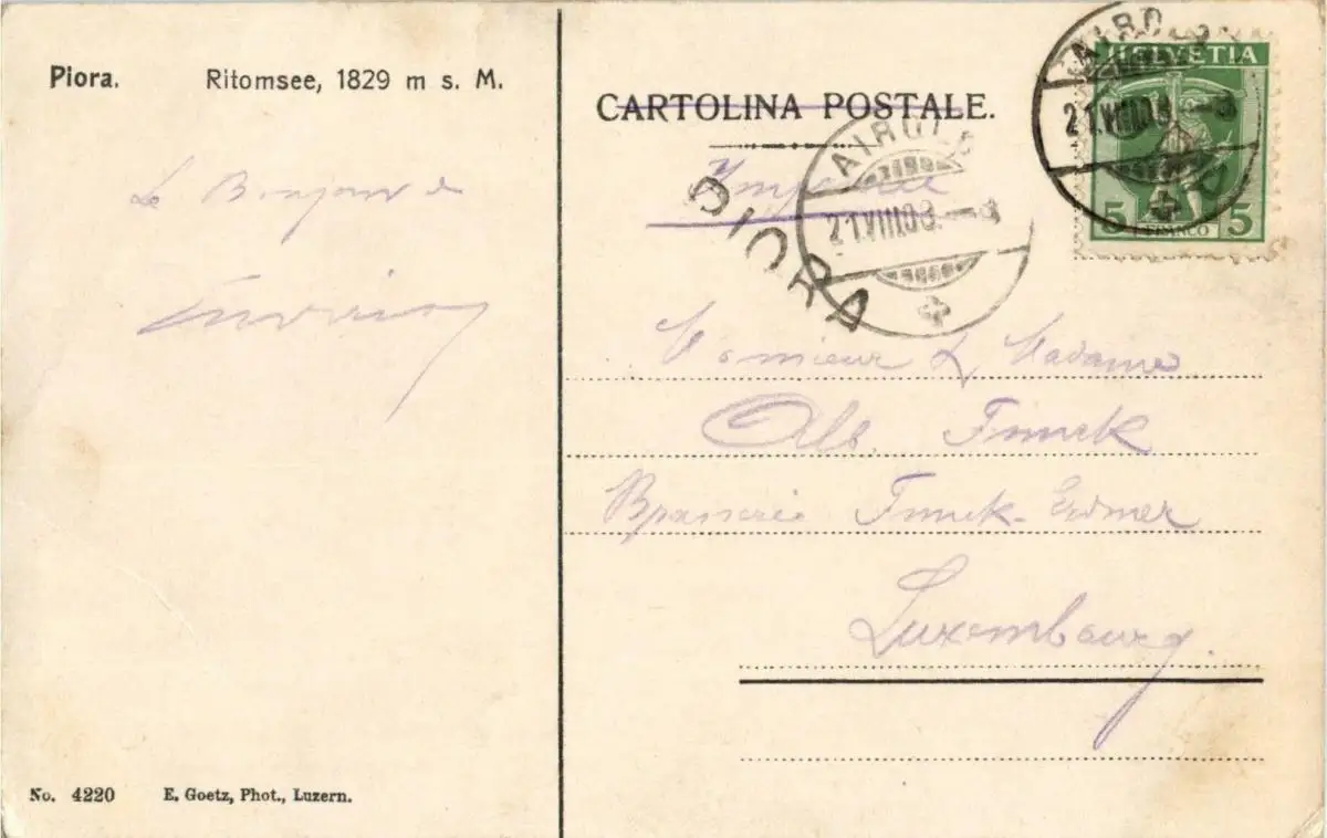 Danke. Alles Bestens. Können Sie mir allenfalls mitteilen, aus welchem Jahr die Postkarte stammt? Besten Dank.