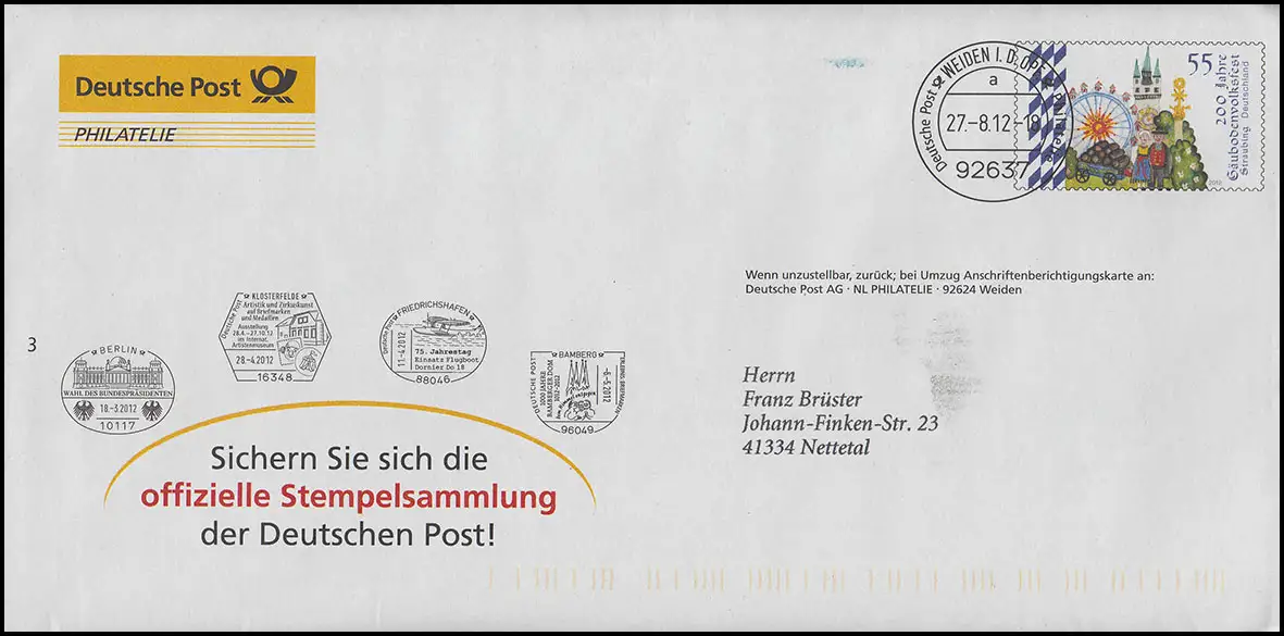 Plusbrief F 614 Gäubodenvolksfest - Offizielle Stempelsammlung WEIDEN 27.8.2012