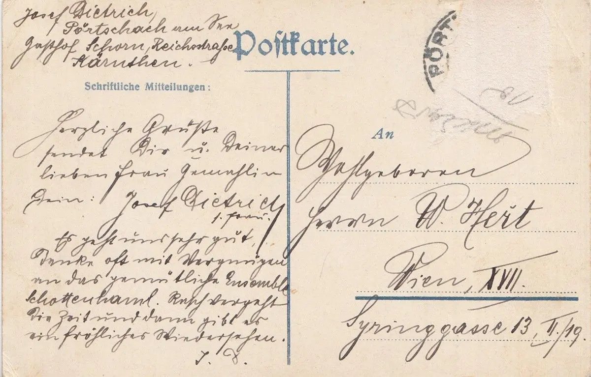 Klagenfurt , Joh. Leon 1907. Farb. Karte. 9 x 14 cm. Rückseite beschrieben, Marke abgelöst.