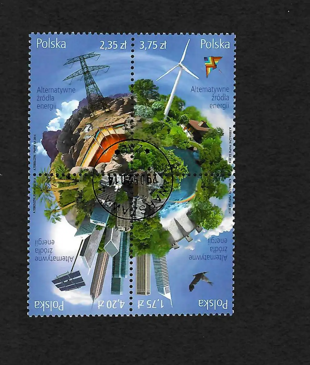 Polen: Erneuerbare Energiequellen. gestempelt #4707-10, Kleinbogenblock-Teil