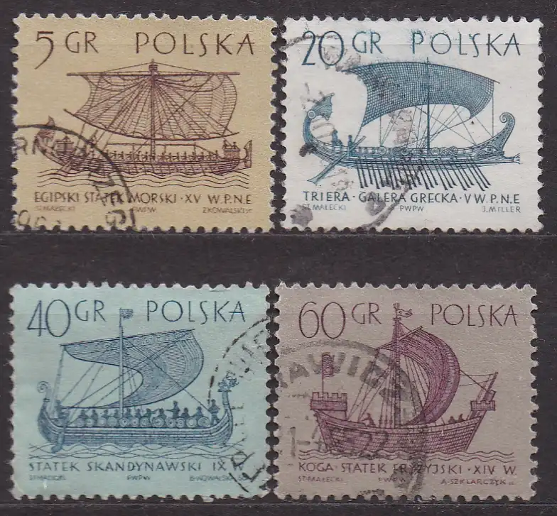 Polen, Mi-Nr. 1383, 1385, 1387 + 1388 gest., Segelschiffe