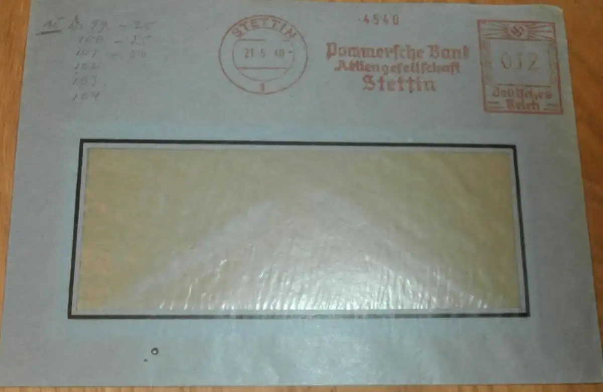 Pommersche Bank Stettin , 1940 , alter Briefumschlag , Stempel , Reklame , Bank , Pommern , Mecklenburg !!AZ-WR/1N