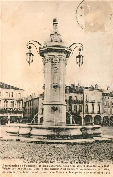 Pont-a-Mousson Fontaine Renaissance Pont-a-Mousson postalisch gelaufen 1921-1965 Erhaltung siehe scans [FriedD77] Frierer