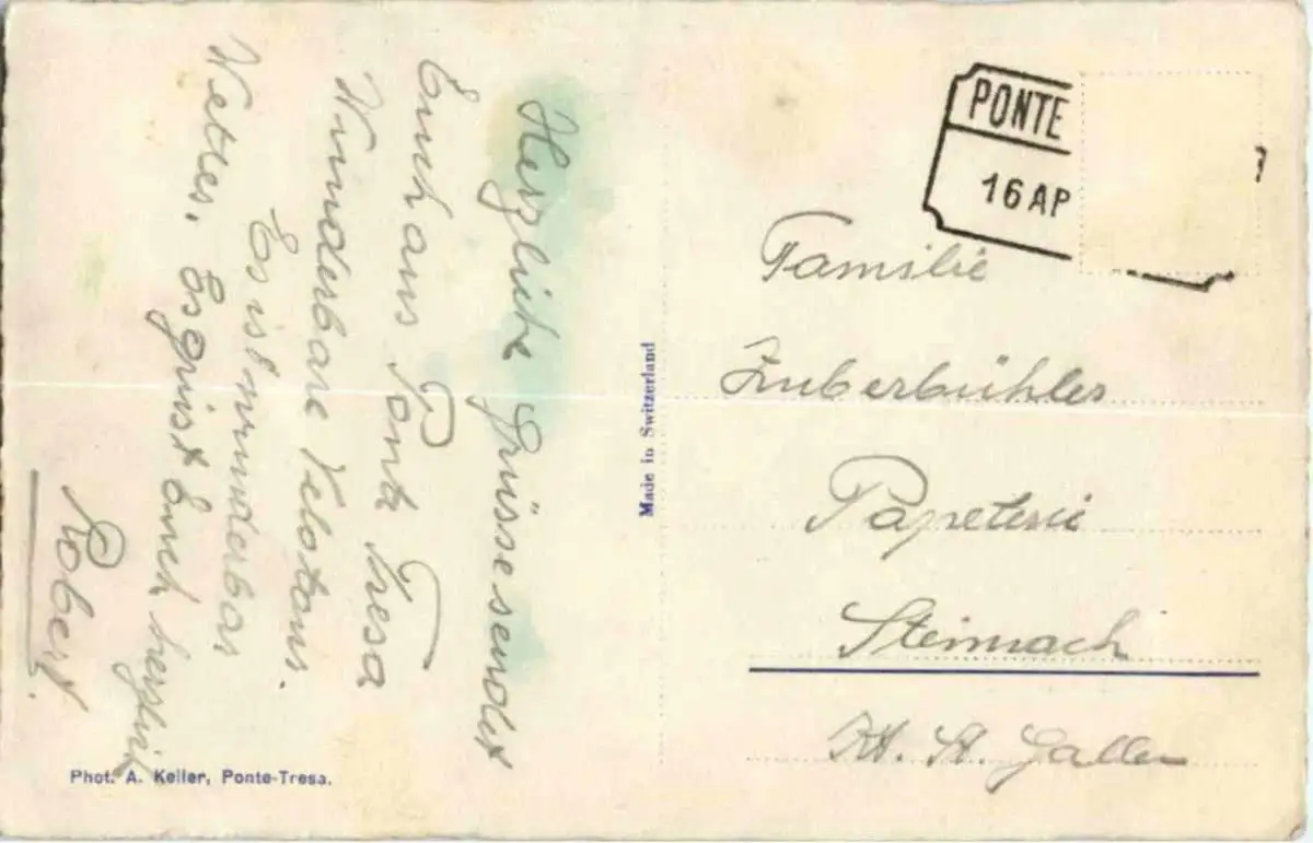 Danke. Alles Bestens. Können Sie mir allenfalls mitteilen, aus welchem Jahr die Postkarte stammt? Besten Dank.