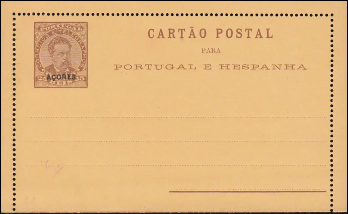 Portugal Kartenbrief K1 Luis I mit Aufdruck Azores / Azoren 1887, ungebraucht **