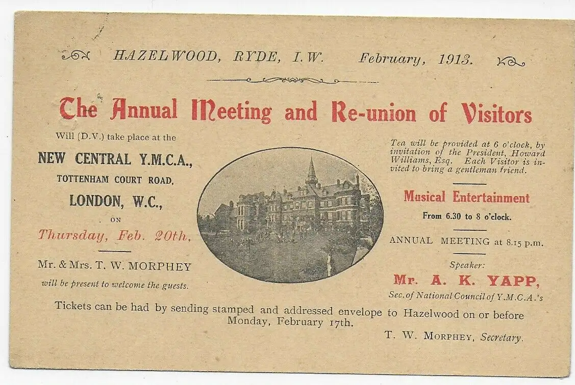 Post card 1913, Isle of Wight: Ryde to London; Annual Meeting Y.M.C.A.