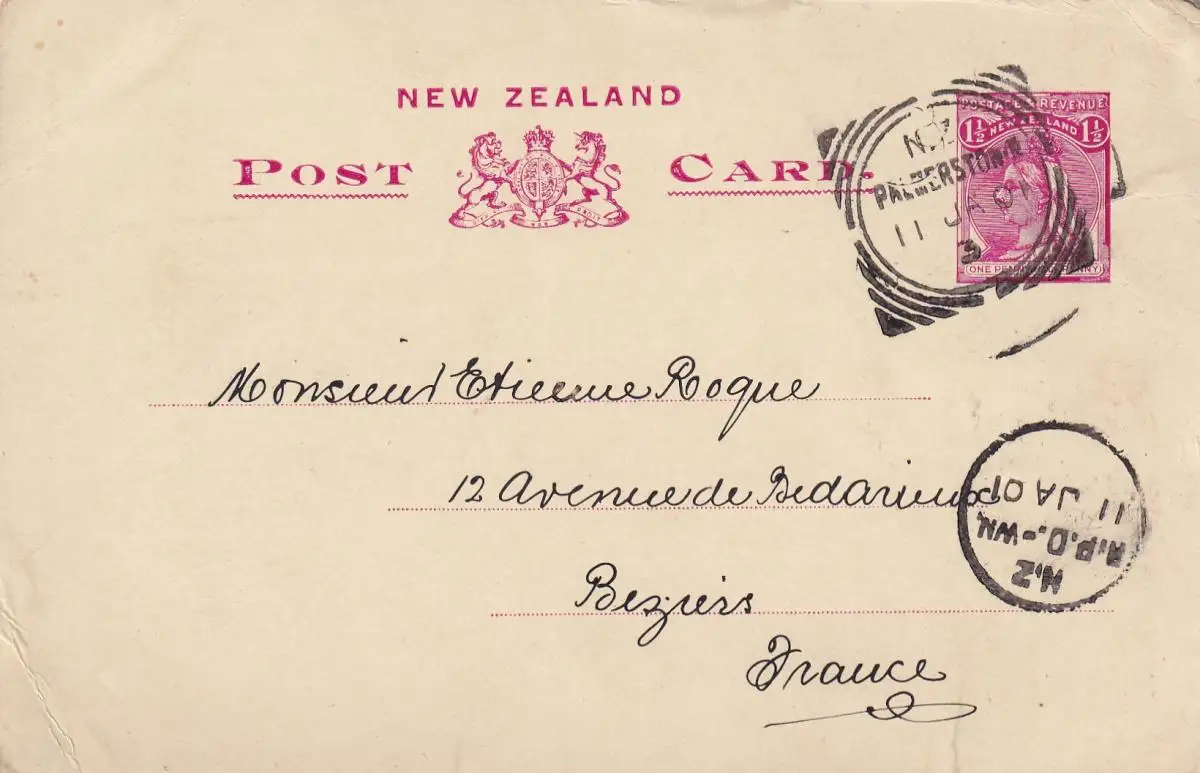 Post card Palmerston 1901 to France, Beziers, Geysiv