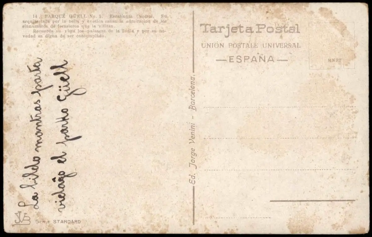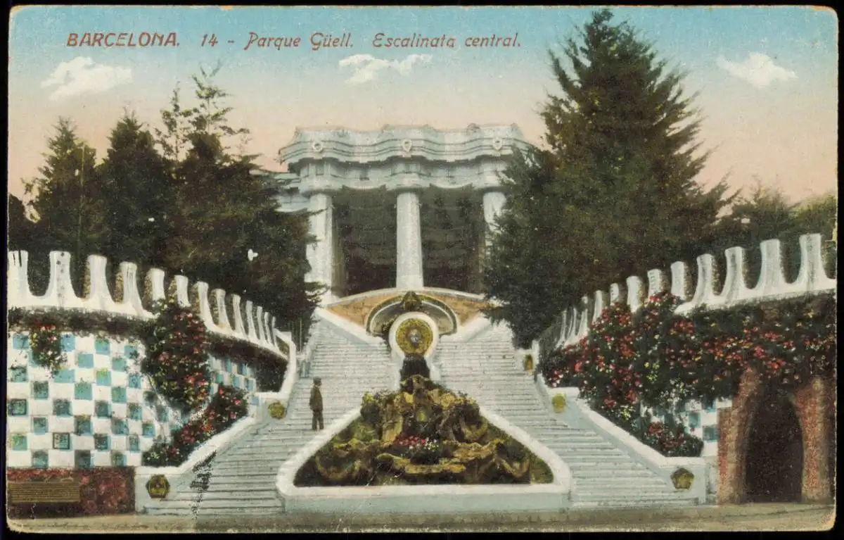 Postales Barcelona Parque Güell. Escalinata central. 1918