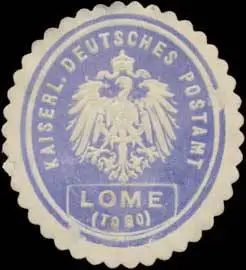 K. Deutsches Postamt Lome, Togo, Deutsche Kolonie, Kolonialmarke, Größe/Zustand: 4x4 , Fehldruck, guter Zustand, Original Verschluss-Siegelmarke aus Papier welche früher von Behörden, Firmen etc. zum Versiegeln der Briefe benutzt wurden