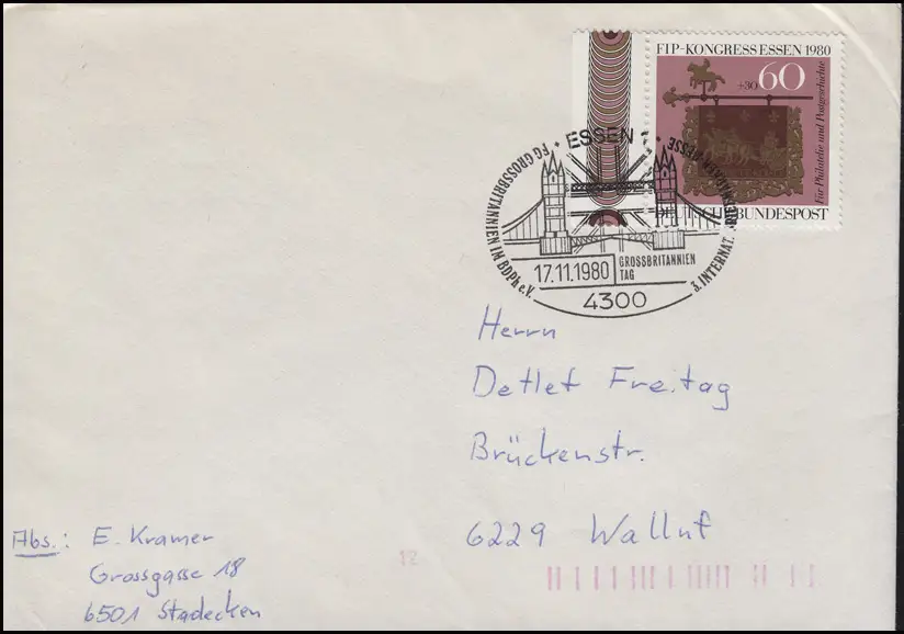 Postautomation: Brief SSt ESSEN Messe 17.11.80, 18-Strich-Codierung mit Nr. 12