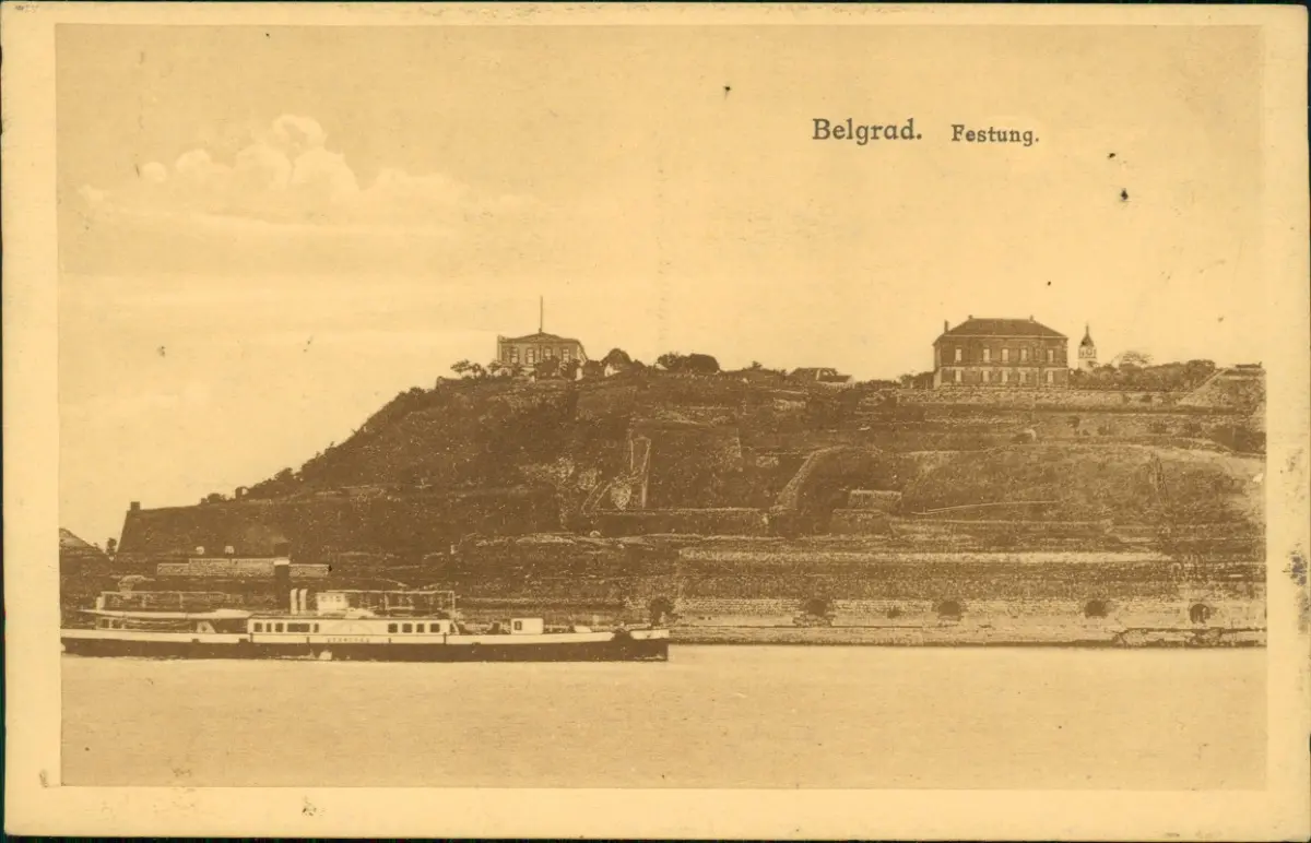 Postcard Belgrad Beograd Београд Festung Dampfschiff 1916 gel. Feldpoststempel