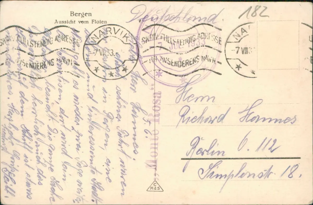Postcard Bergen Bergen Stadt - Blick von Floien - Dampfer 1933