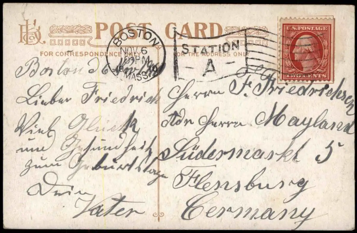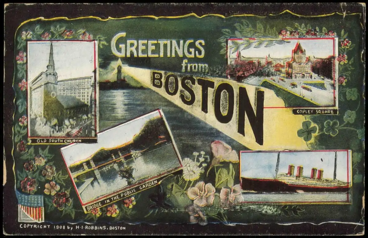 Postcard Boston MB: Square Steamer Lighthouse USA 1909 Flaggenstempel
