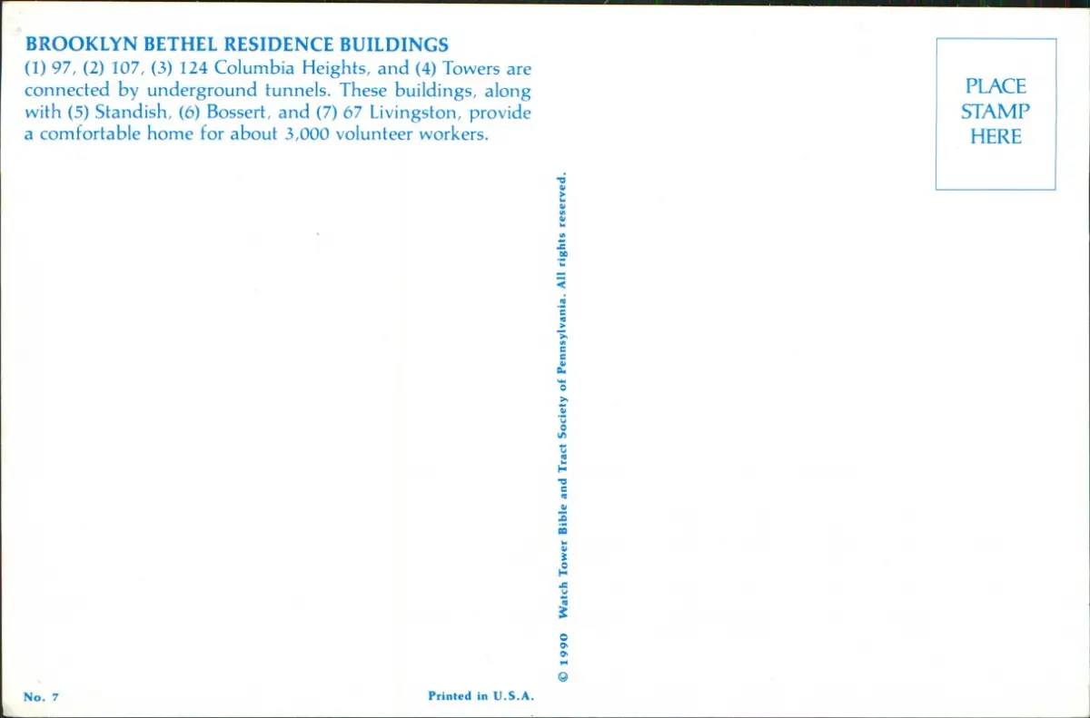Postcard Brooklyn Bethel Residence Buildings 1990