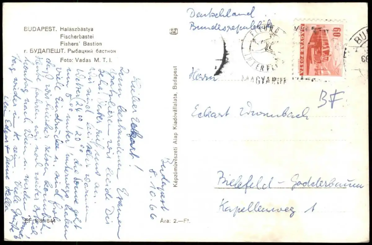 Postcard Budapest Fischerbastei Fishers' Bastion Halászbástya 1966