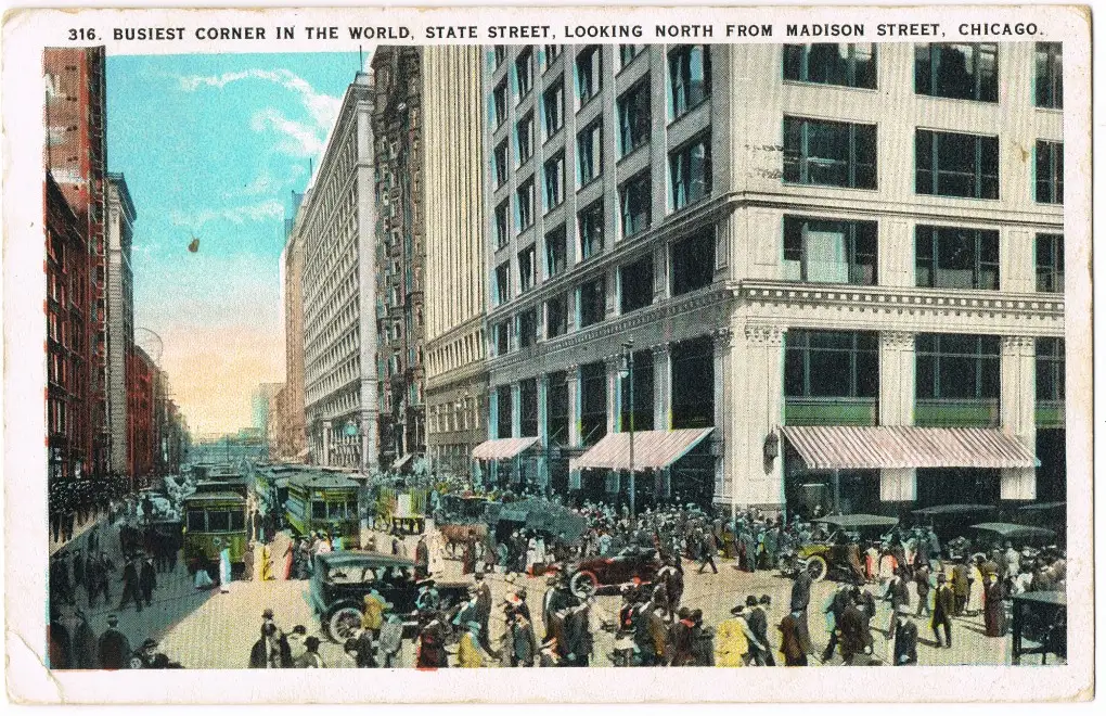 Postcard Chicago STATE STREET, LOOKING NORTH FROM MADISON STREET 1923