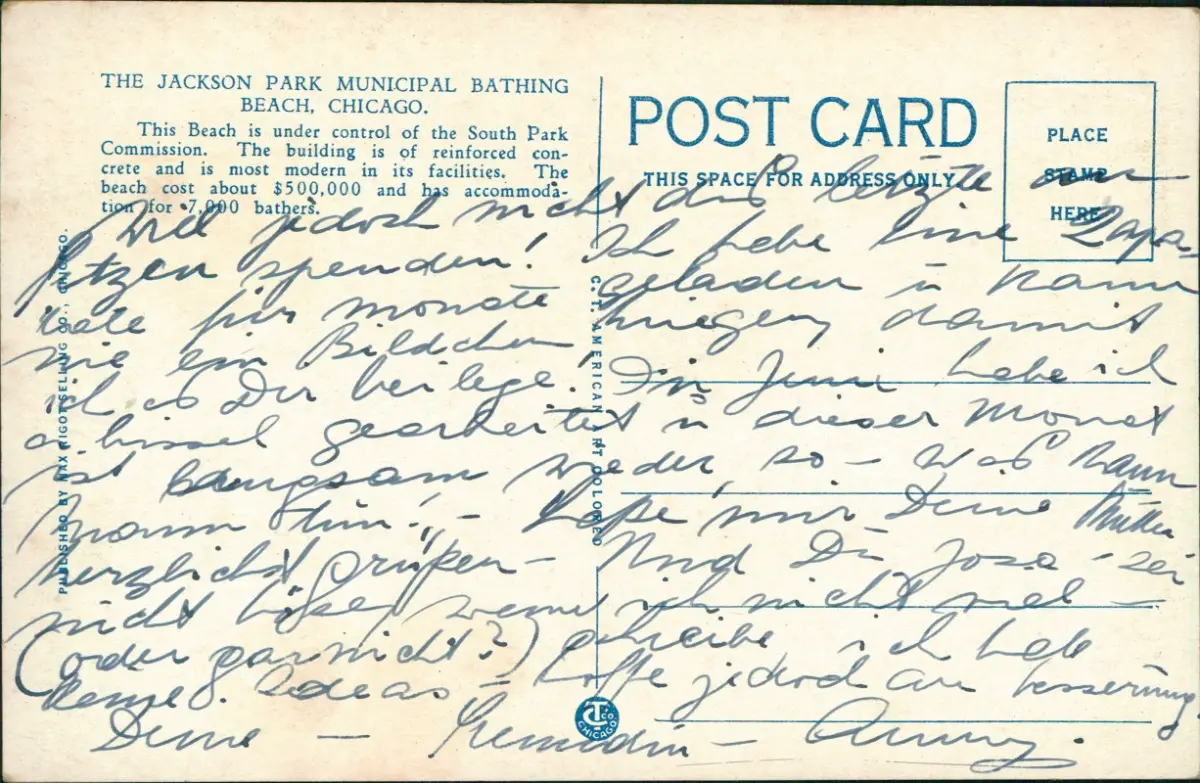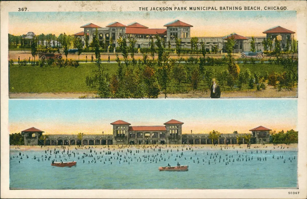 Postcard Chicago The Jackson Park Bathing Beach 2 Bild 1928