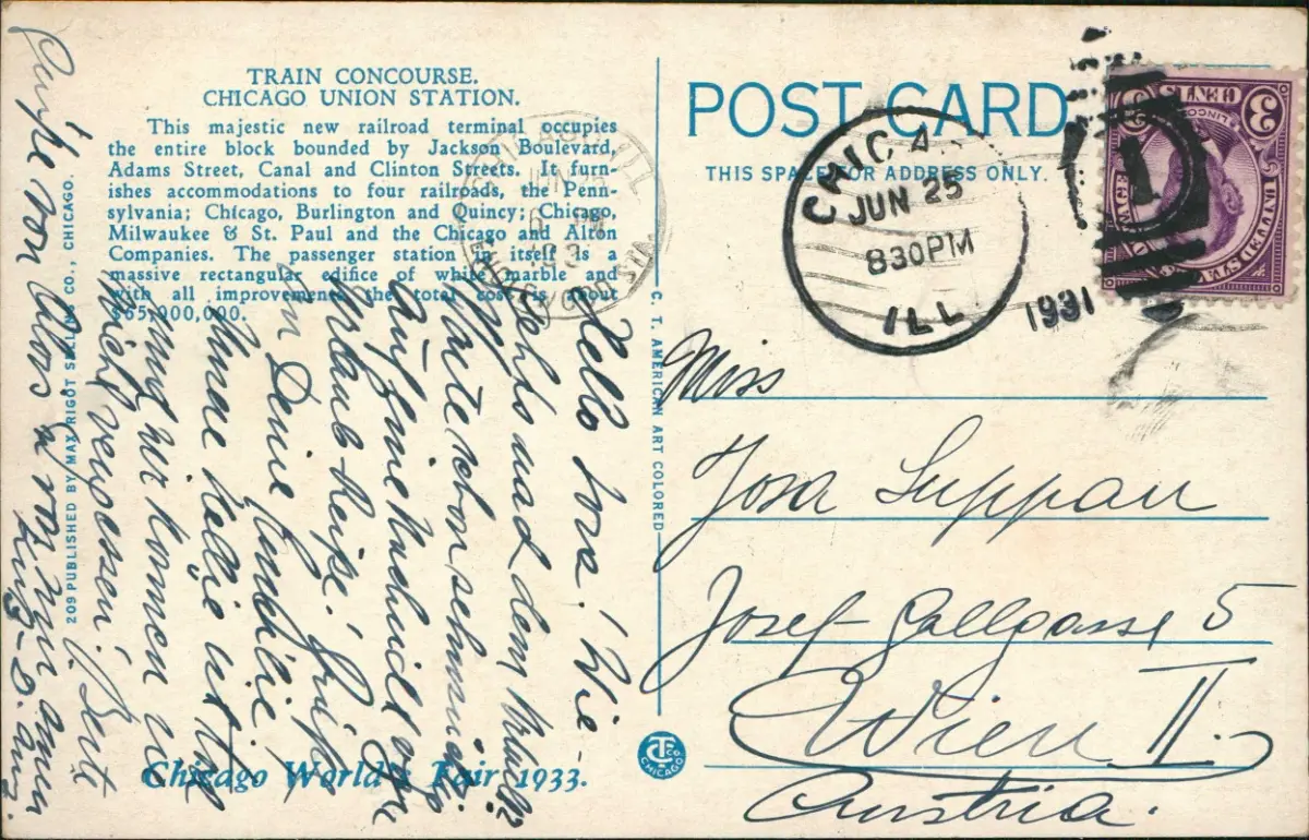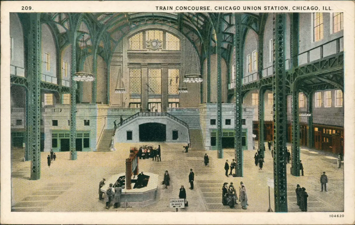Postcard Chicago Union Station - Train Concourse - Bahnhof 1925