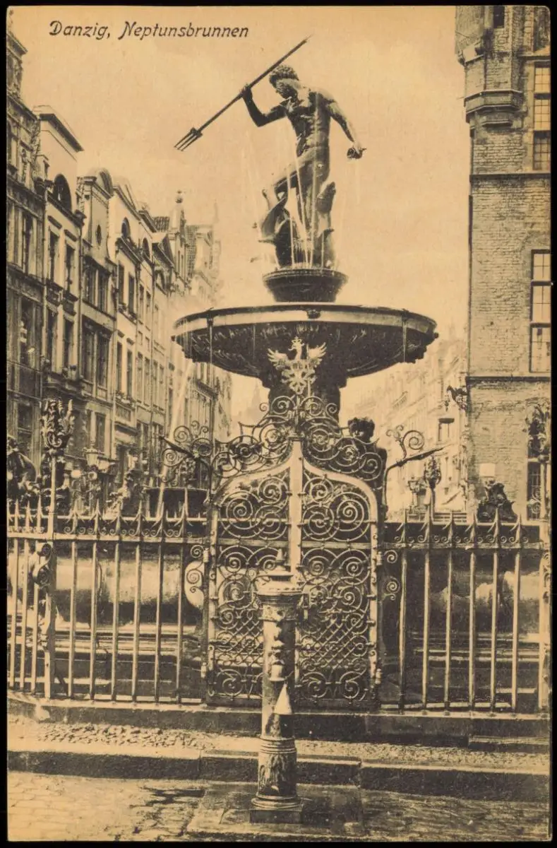 Postcard Danzig Gdańsk/Gduńsk Neptunsbrunnen - Straßenblick 1912