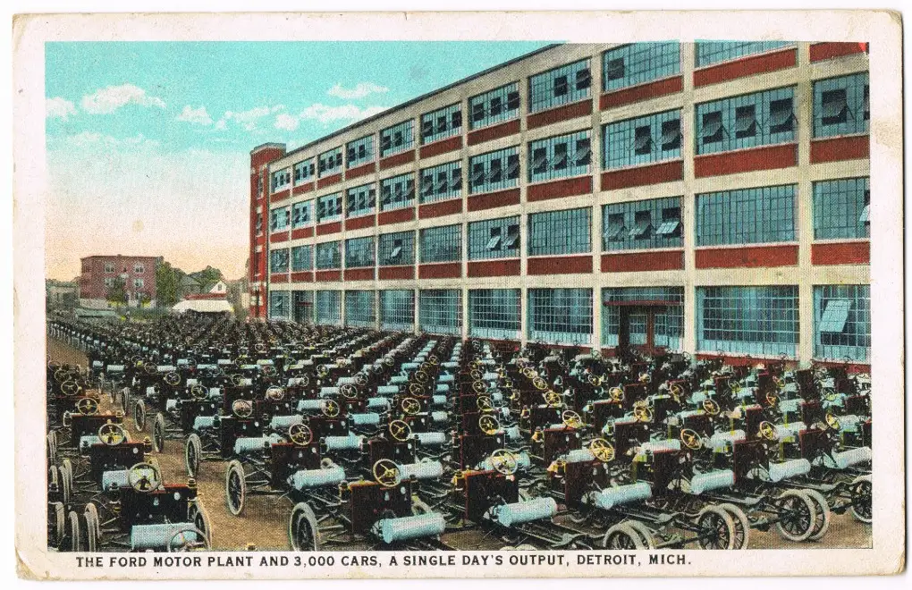 Postcard Detroit Ford Motor Plant (Autofabrik) 1924