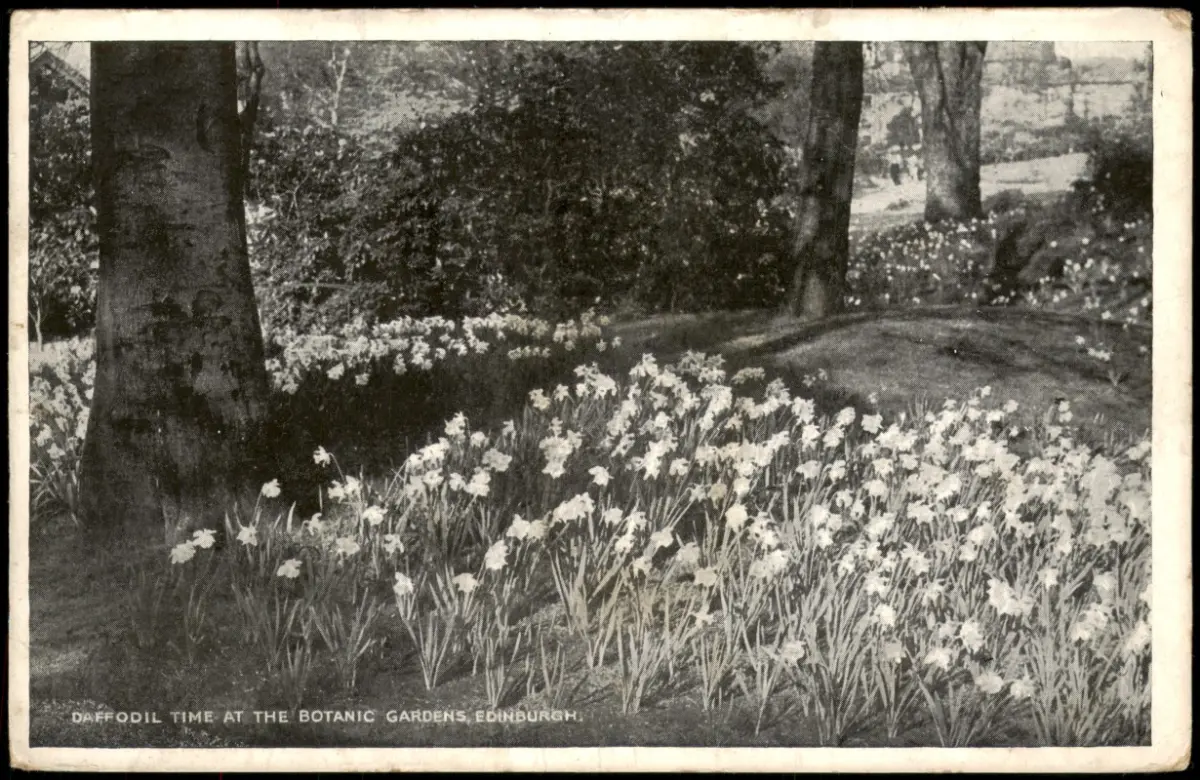 Postcard Edinburg Dùn Èideann DAFFODIL TIME AT THE BOTANIC GARDENS 1928