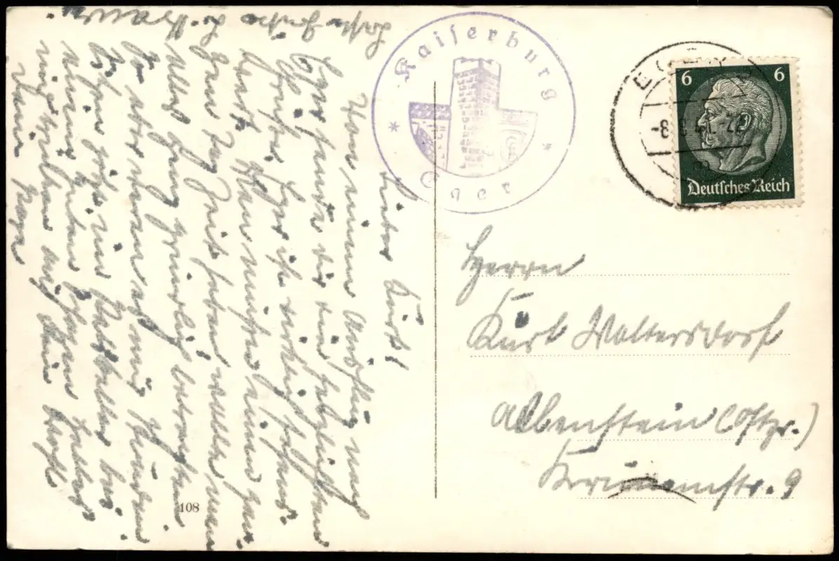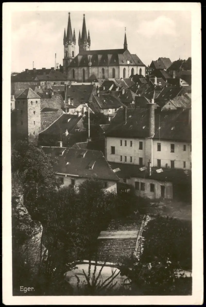 Postcard Eger Cheb Stadt-Teilansicht 1941 mit Zusatzstempel der Kaiserburg