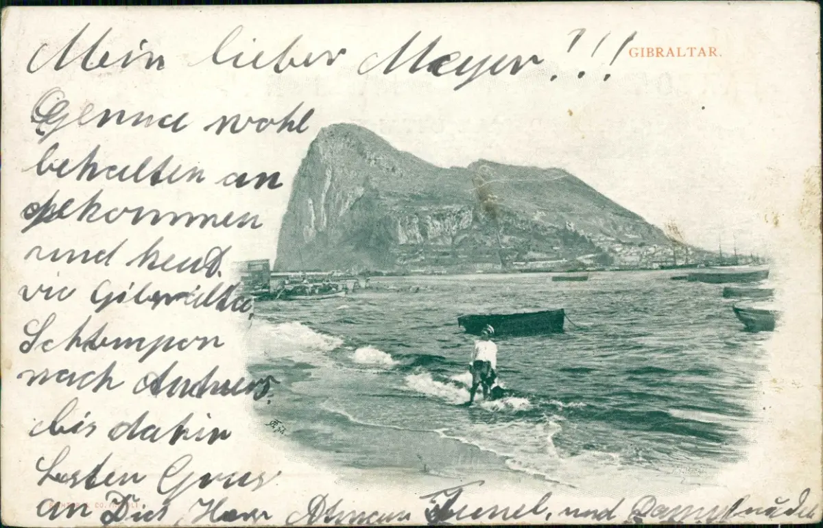Postcard Gibraltar Strand Boot Berg 1901