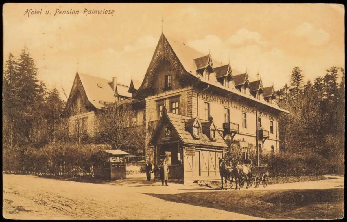 Postcard Herrnskretschen Hřensko Hotel Rainwiese b. Tetschen 1922