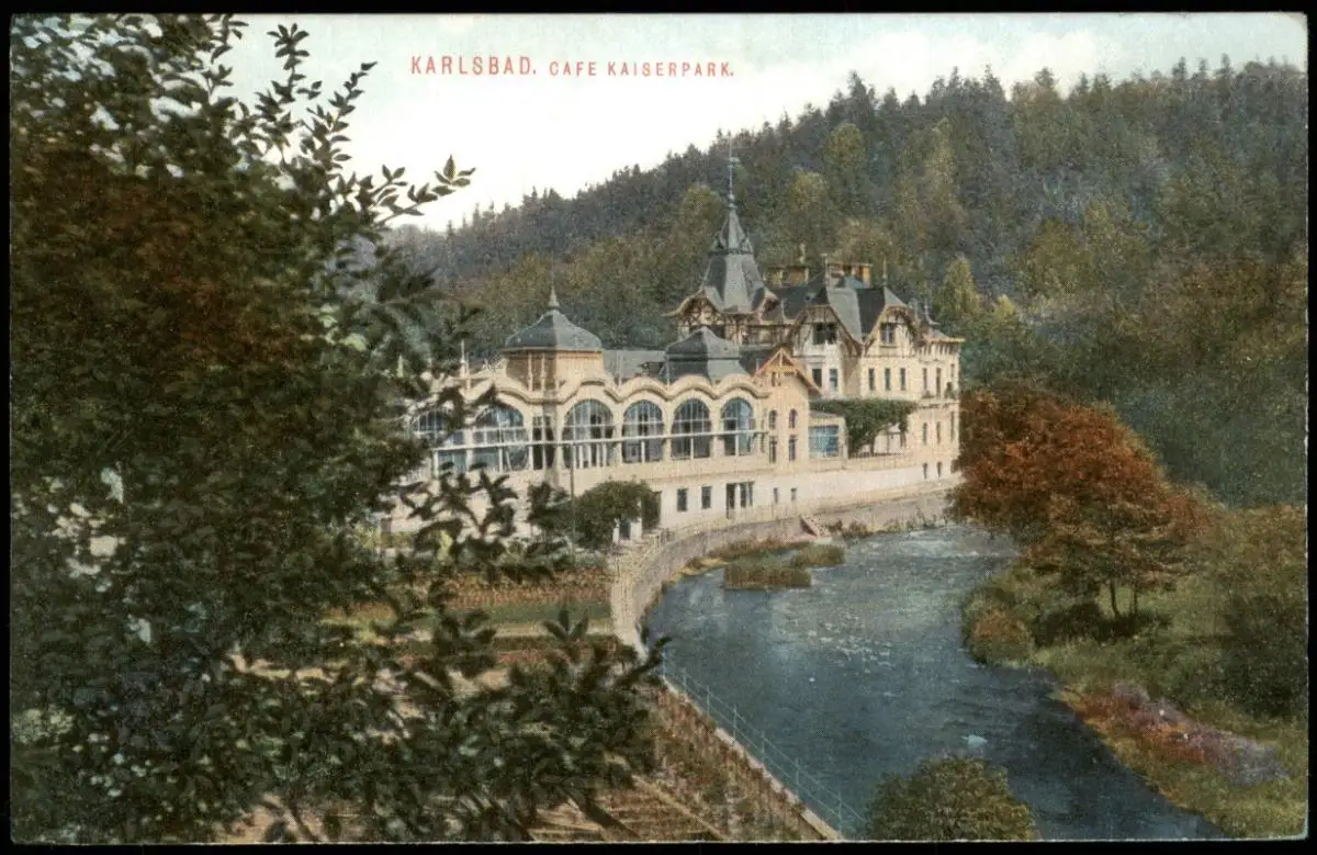 Postcard Karlsbad Karlovy Vary CAFE KAISER PARK 1913
