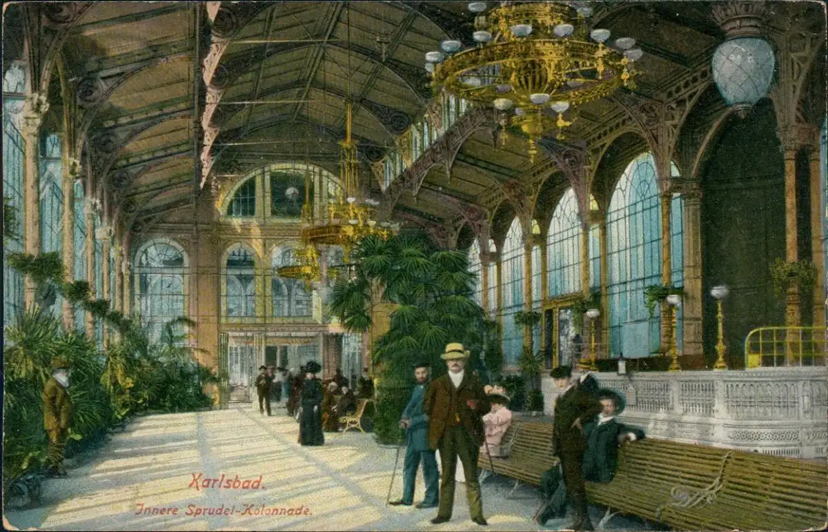 Postcard Karlsbad Karlovy Vary Innere Sprudel-Kolonnade. 1922 Böhmen Bohemia