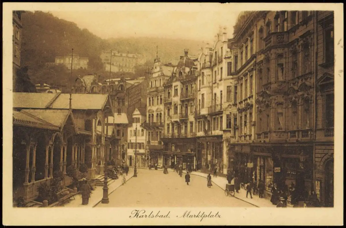 Postcard Karlsbad Karlovy Vary Marktplatz - Geschäfte 1913