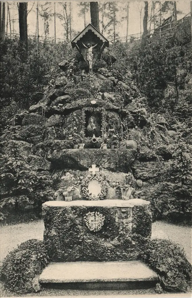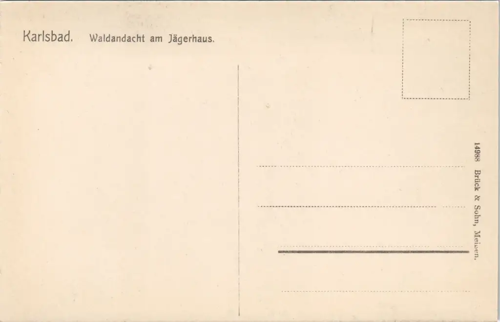 Postcard Karlsbad Karlovy Vary Waldandacht am Jägerhaus. 1912
