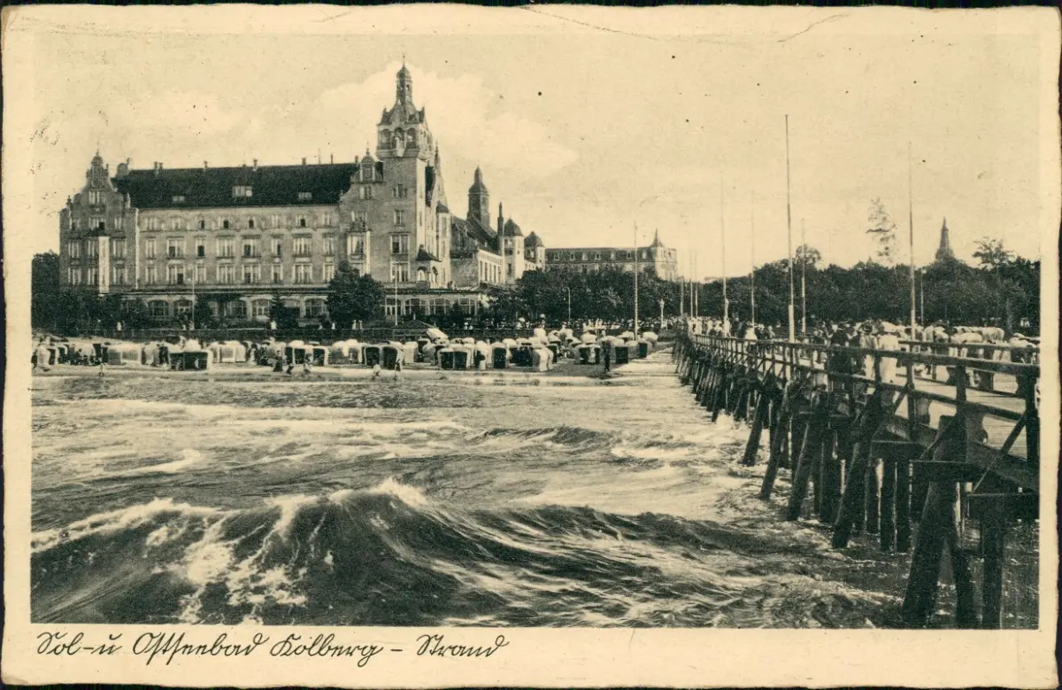 Postcard Kolberg Kołobrzeg Kurhaus Strandschloß 1938 Pommern