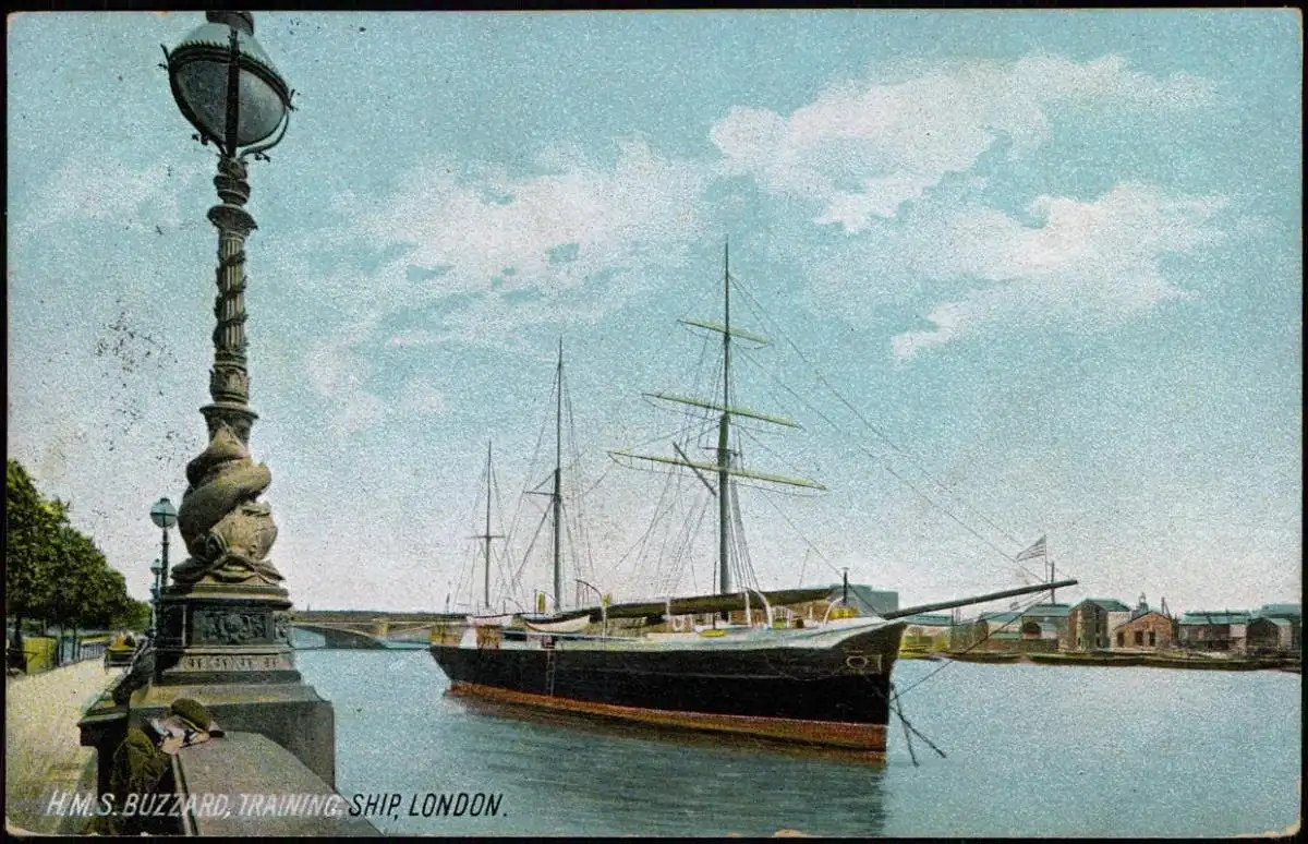 Postcard London HMS.BUZZARD, TRAINING SHIP Schiff 1908