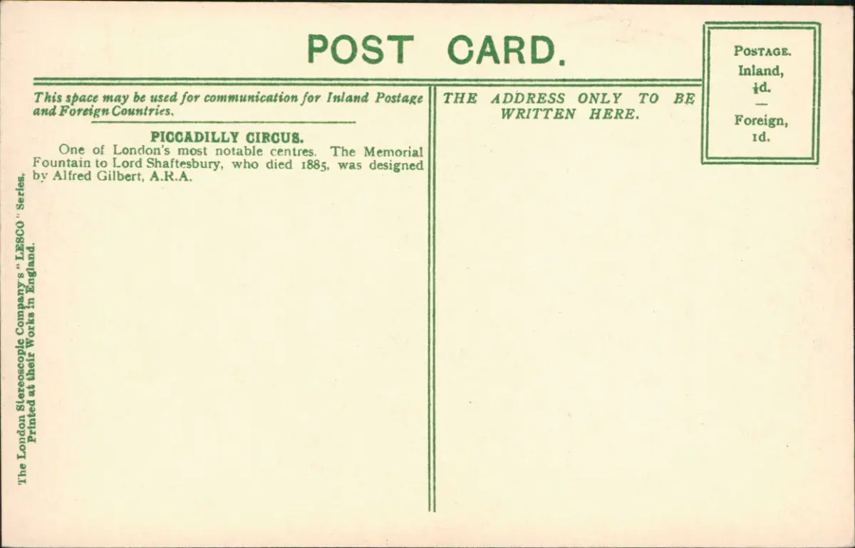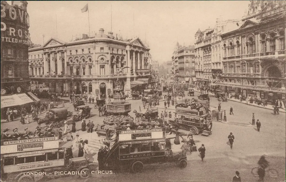 Postcard London Piccadilly Circus Traffic Bus 1919