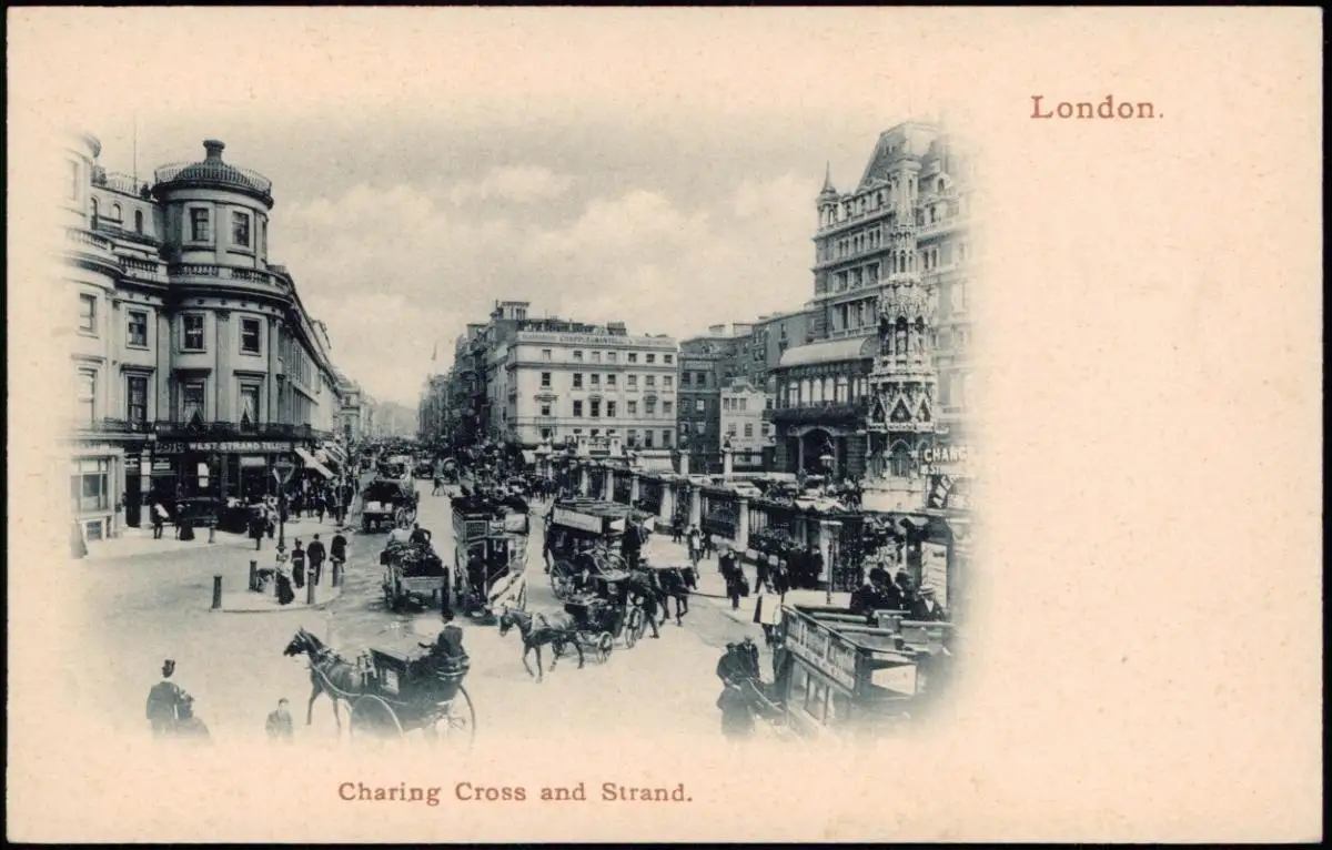 Postcard London Stadtteilansicht Charing Cross and Strand 1900