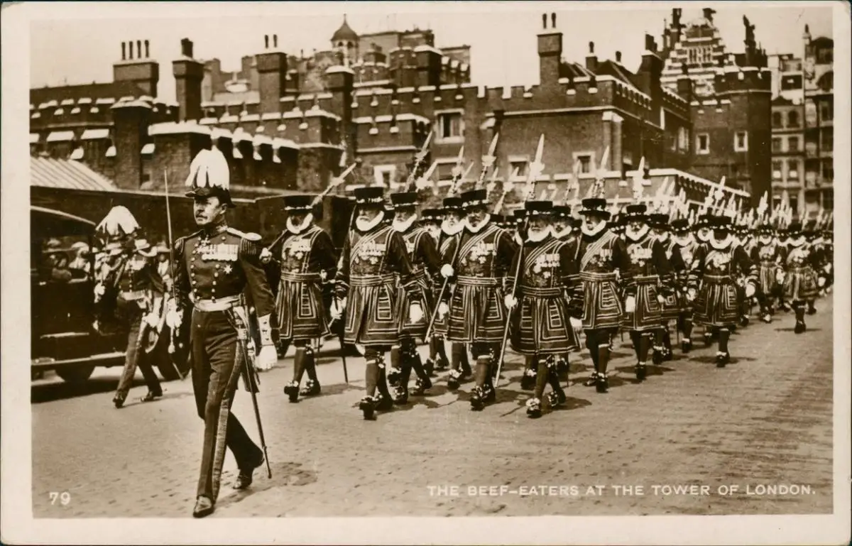 Postcard London THE BEEF-EATERS AT THE TOWER 1930