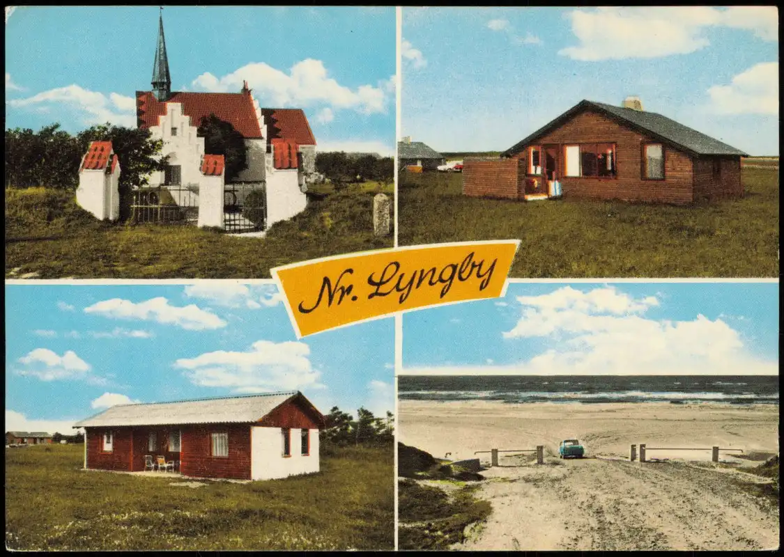 Postcard Lyngby Danmark 4 Bild Kirche Hütten Strand 1978