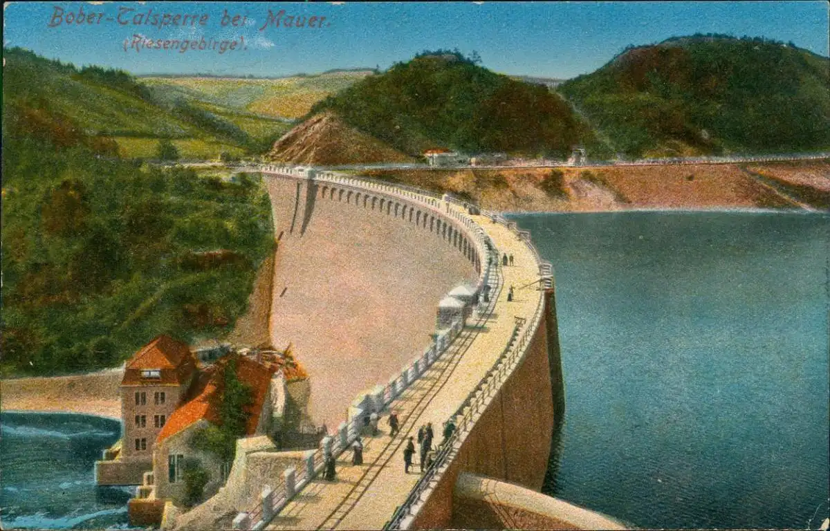 Postcard Mauer Pilchowice Bobertalsperre 1918 gel. Feldpost Warmbrunn
